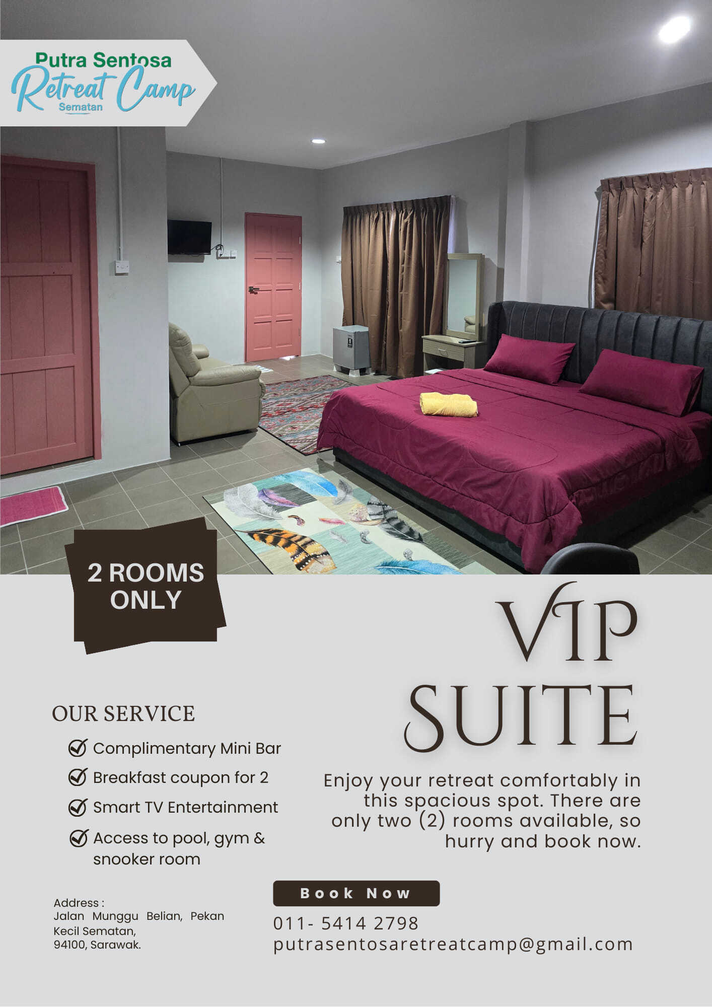 Choose from a variety of accommodations β from exclusive VIP suites to cozy queen rooms. Whether youβre a couple, a family, or a corporate team, we have a room for you.